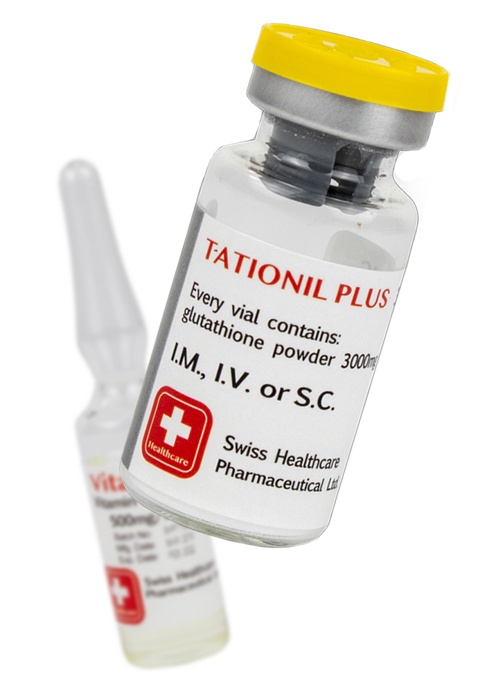 Tationil Plus 3000 mg es la presentación intravenosa e intramuscular de glutatión reducido (GSH) desarrollada por Swiss Healthcare Pharmaceutical Ltd., formulada bajo los estándares europeos más exigentes. Su alta pureza y estabilidad lo convierten en la opción preferida por los profesionales de la salud que buscan un antioxidante maestro para detoxificación, longevidad celular y terapias complementarias.