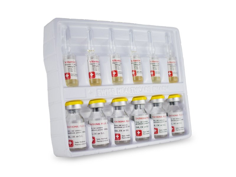 Presentación: Caja con 6 viales de 3000 mg de glutatión reducido liofilizado y 6 ámpulas de diluyente (500mg de ácido ascórbico – vitamina C).